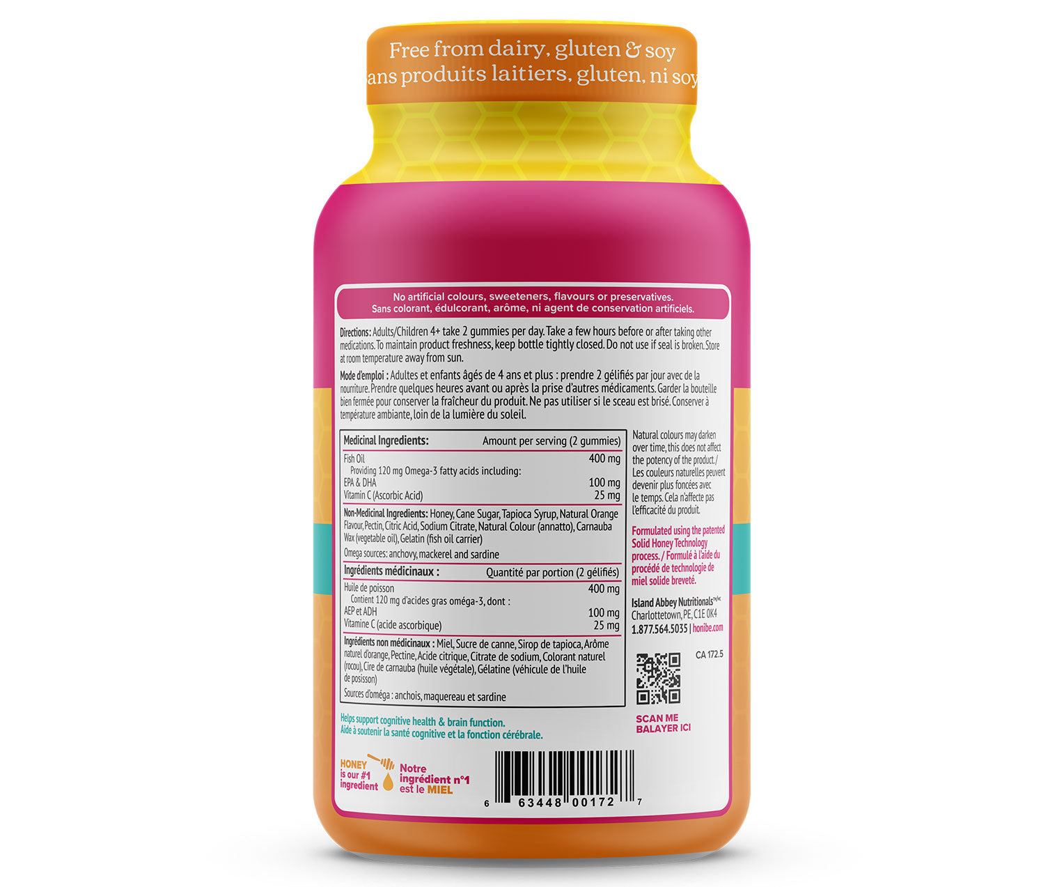 🍁 100% Canadian, eh?: Honibe is proud to be a Canadian business. We manufacture all of our products in beautiful PEI and source natural honey from all across Canada. We want nothing but the best for our fellow Canadians, so our gummies do not contain any artificial colours, flavours, sweeteners or preservatives. They are also free from gluten, dairy, soy, and common allergens.