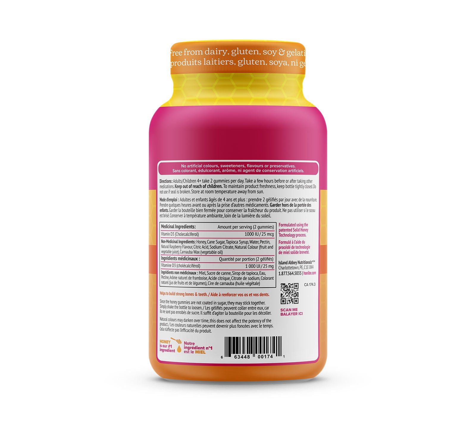🍁 100% Canadian, eh?: Honibe is proud to be a Canadian business. We manufacture all of our products in beautiful PEI and source natural honey from all across Canada. We want nothing but the best for our fellow Canadians, so our gummies do not contain any artificial colours, flavours, sweeteners or preservatives. They are also free from gluten, dairy, soy, and common allergens.