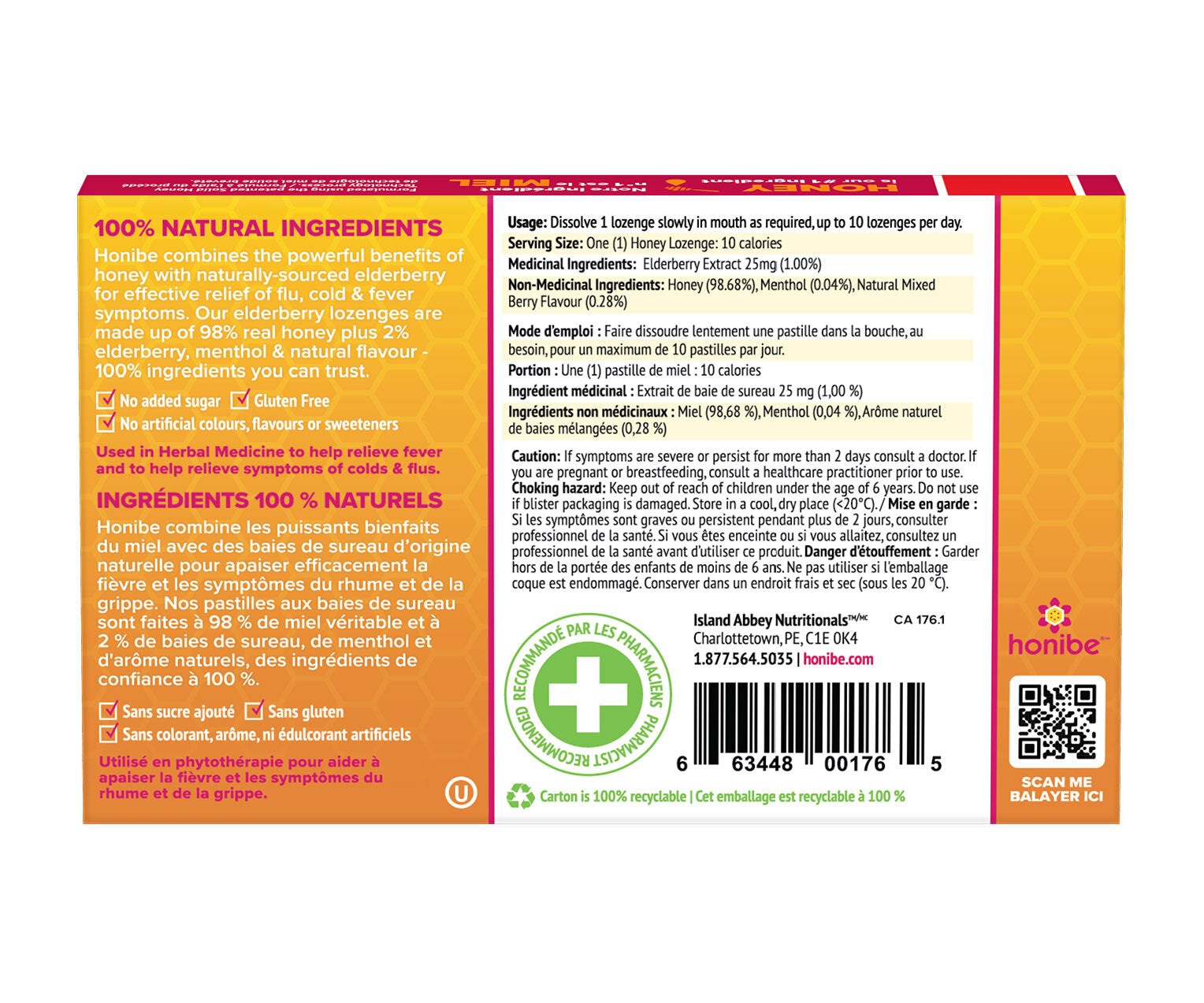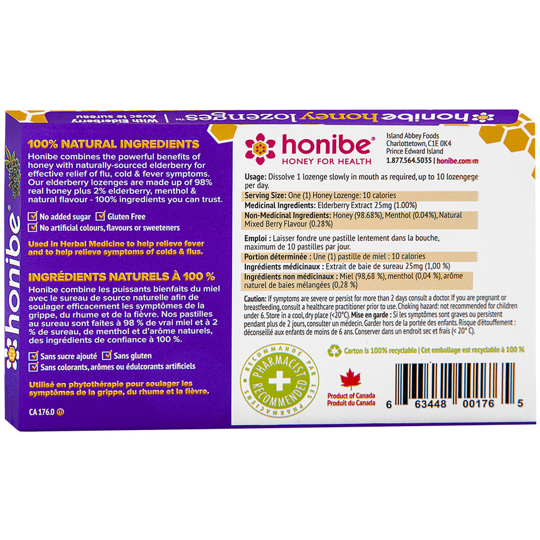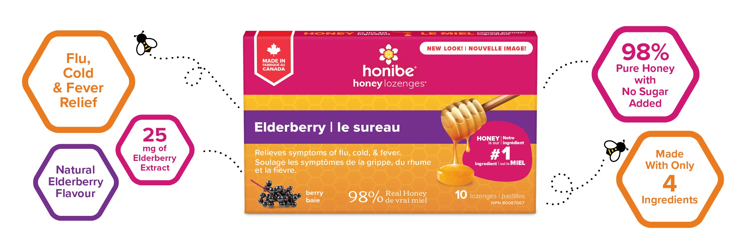 🌿 Relief for Cold & Flu Symptoms: Honibe’s Elderberry throat lozenges provide effective relief of sinus congestion, cough and sore throat. These lozenges combine the natural benefits of raw honey with the expectorant properties of Elderberry into a delicious naturally berry flavoured cough drop.