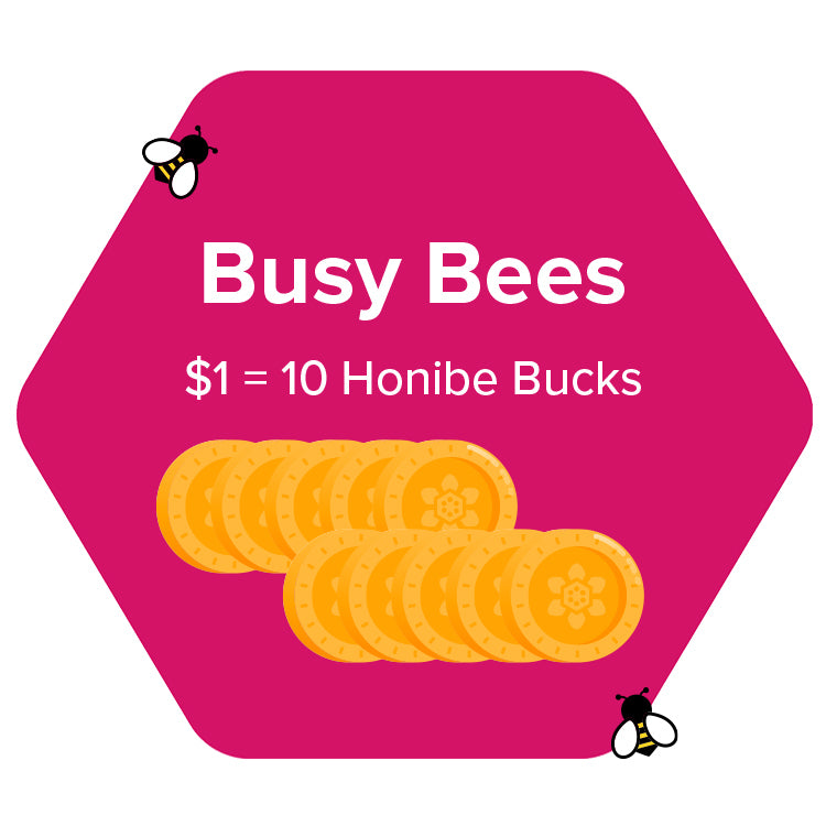 ✓ 500 Honibe Bucks = $1 off a 1-time purchase or subscription purchase