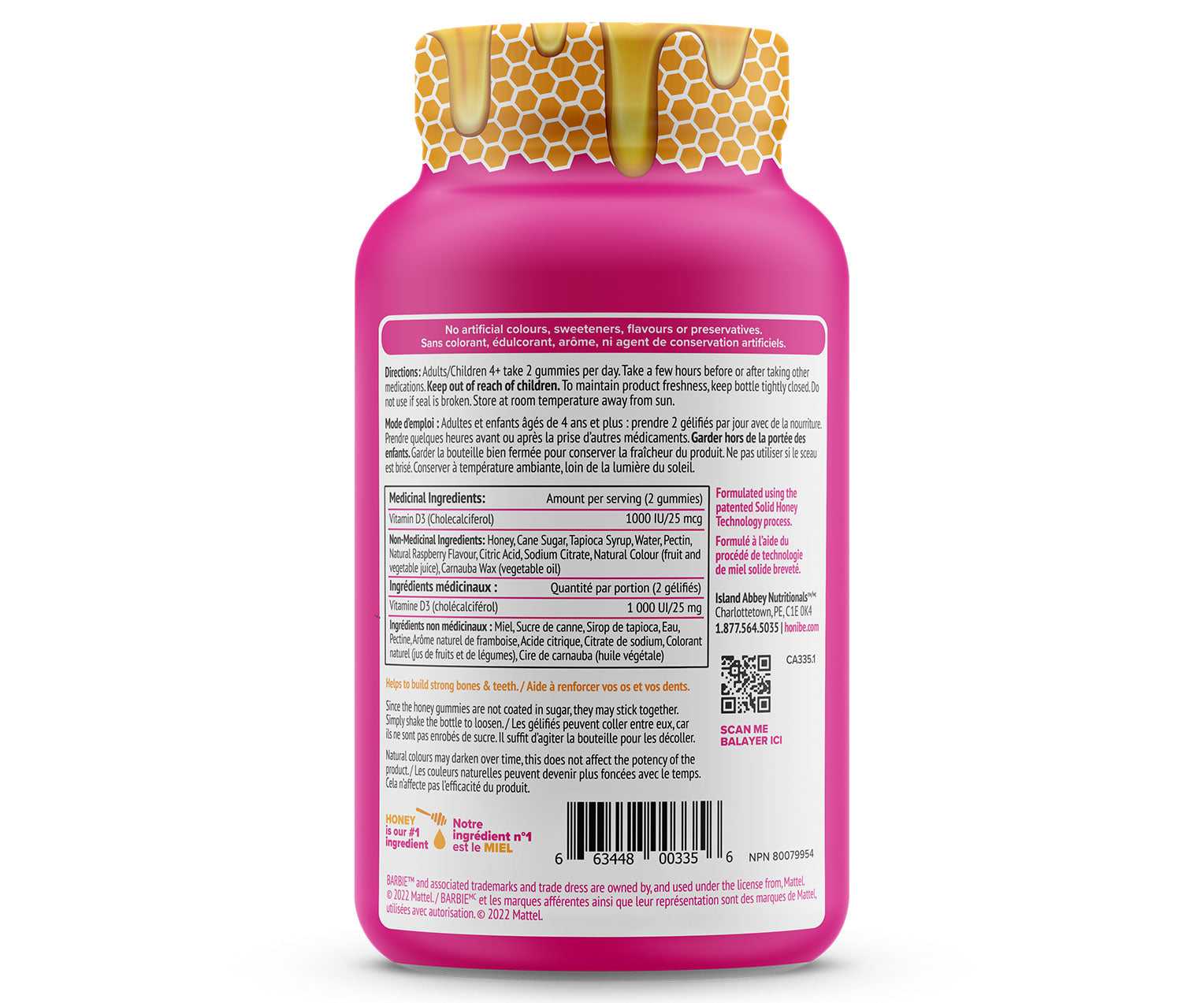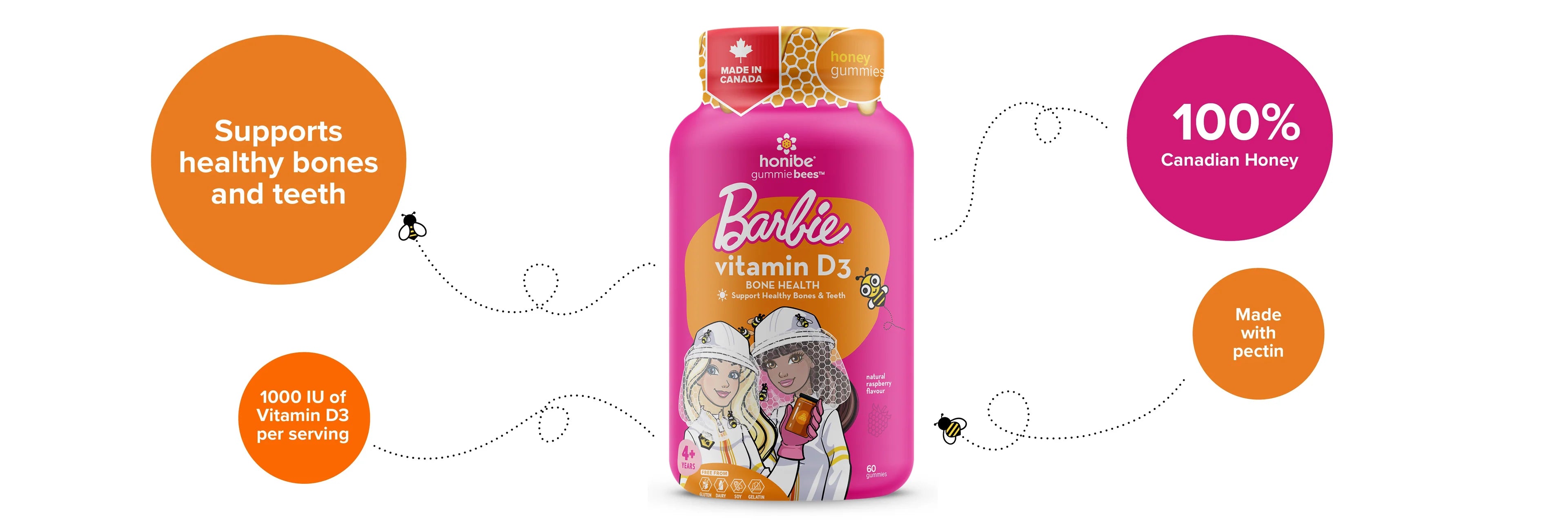 🍁 Proudly Canadian: Trust in quality, trust in Canada. Our Barbie™ Vitamin D Bone Health Gummie Bees are proudly made in Canada, upholding the highest standards of excellence.