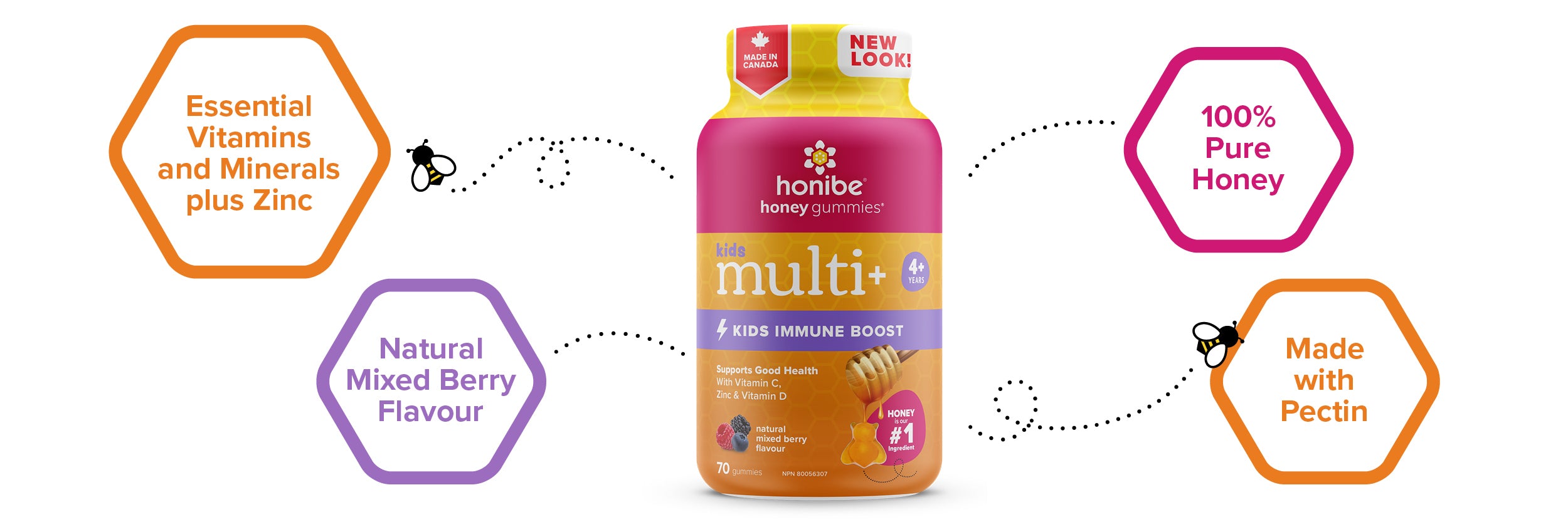 Non-Medicinal Ingredients: Honey, Organic Tapioca Syrup, Organic Cane Sugar, Water, Natural Mixed Berry Flavour, Pectin, Citric Acid, Sodium Citrate, Natural Colours (fruit & vegetable juice), Carnauba Wax (vegetable oil)